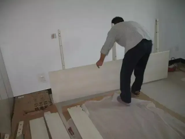 吊顶结束后,可以约橱柜上门安装了。
